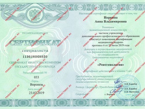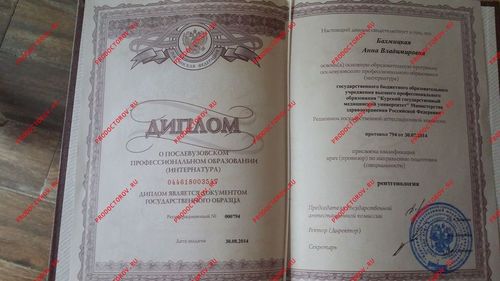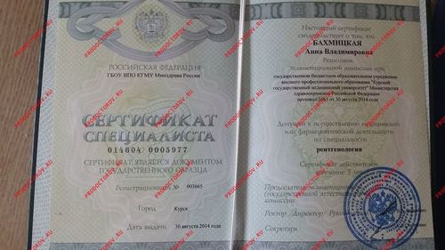 Сертификат специалиста 0146040005976 от 30.08.2014, Диплом ЖБ №0007105 от 24.06.2011