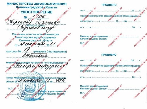 Диплом о переподготовке ПП № 997096 от 28 апреля 2007г. нейрохирургия, выдан: Санкт-Петербургская медицинская академия последипломного образования