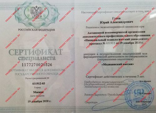 Сертификат 1177270020526 №031912-03 от 19 декабря 2020г, медицинский массаж, АНО ДПО «НТУ» Москва